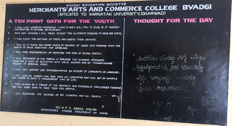Byadgi Education Society’s merchants’ Arts and Commerce College, Byadgi is one of the premier educational institutions in Haveri district. Byadgi is a taluka headquarter in the present Haveri district. Byadgi has been very famous for Red chili. The vast and extensive market yard is known as the second largest Red chilly dealing market in the country. Byadgi was even known once as a famous market center of garlic, areca nut, turmeric and jaggery with all its Florentine background. This place has been identified as a big commercial point in the country as well as in surrounding areas.